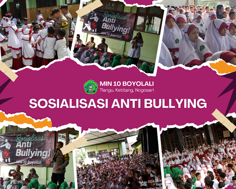 Demi mencegah maraknya kasus bullying di kalangan anak – anak, MIN 10 Boyolali bekerjasama dengan Polsek Kecamatan Nogosari untuk melakukan sosialisasi anti bullying terhadap siswa – siswi MIN 10 Boyolali. Polisi sebagai simbol pelindung rakyat dan pengayom Masyarakat dapat memberikan impact yang nyata kepada siswa – siswi MIN 10 Boyolali.