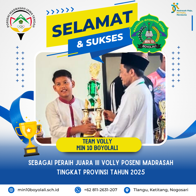 Piala MIN 10 Boyolali Hasil dari Porseni Tingkat MI Se-Kecamatan Nogosari Tahun 2023